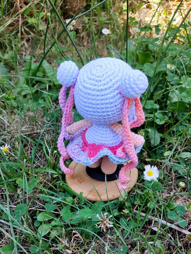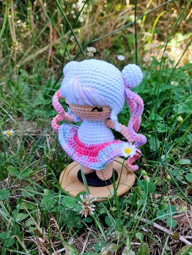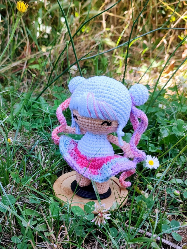 Avec ses couleurs vives et chatoyantes cette adorable poupée amigurumi, réalisée à la main avec soin et passion, saura vous conquérir dès le premier regard ! Chaque détail a été méticuleusement travaillé pour vous offrir un produit unique et authentique. Bien plus qu'un simple jouet cette poupée kawaii est un compagnon affectueux, un objet décoratif original et une véritable pièce de collection !