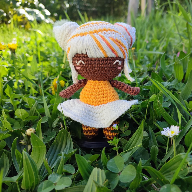 Avec ses couleurs vives et chatoyantes cette adorable poupée amigurumi, réalisée à la main avec soin et passion, saura vous conquérir dès le premier regard ! Chaque détail a été méticuleusement travaillé pour vous offrir un produit unique et authentique. Bien plus qu'un simple jouet cette poupée kawaii est un compagnon affectueux, un objet décoratif original et une véritable pièce de collection !